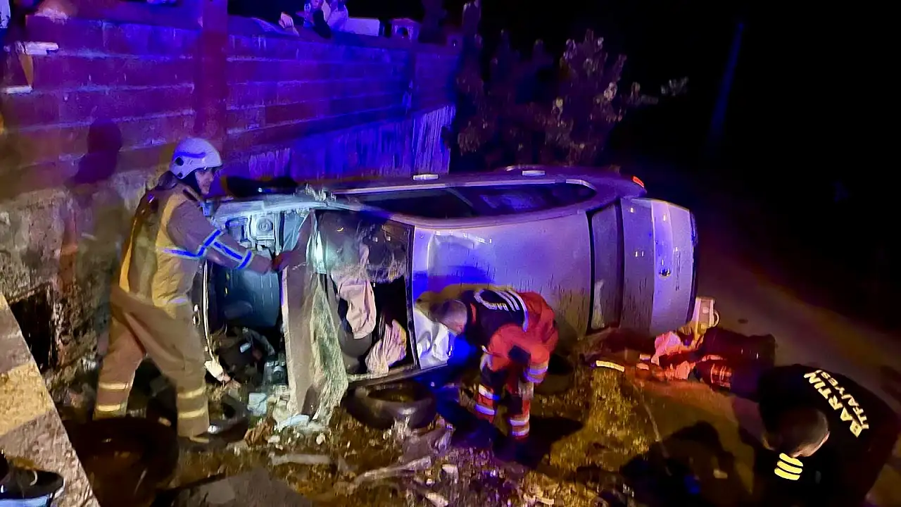 Çarpışan Otomobil takla atıp yan yattı, sürücü sıkıştı
