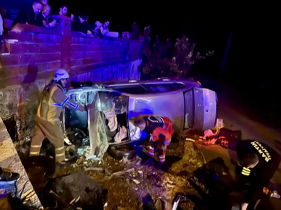 Bartın’da Günay Çeyiz önündeki akıllı kavşakta meydana gelen trafik kazasında arkadan başka bir araca çarpan otomobil takla atarak yan yattı, sürücü araçta sıkışarak yaralandı.