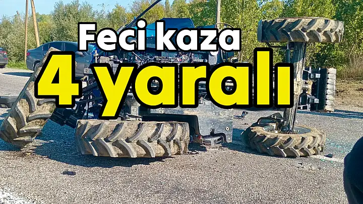 İki otomobil bir traktörün karıştığı Feci kazada 4 kişi yaralandı