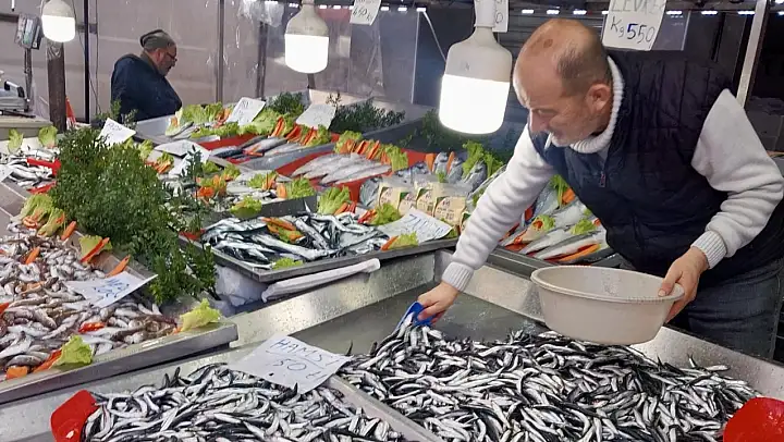 Oynuyor balık, tezgahlar kalabalık