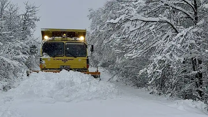 Bartın’da gece saatlerinden itibaren etkisini sürdüren kar yağışının ulaşımı aksatmaması için İl Özel İdaresi ekipleri sahada yoğun mesai harcıyor.