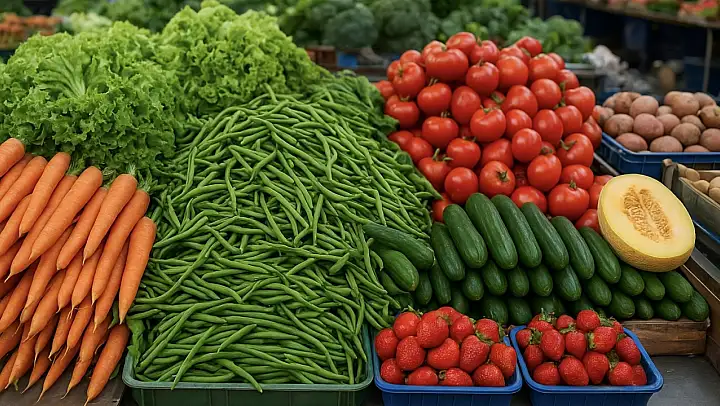 Domates, salatalık 60-80, lahana 30-150, karnabahar 40-80, brokoli 50-70, pırasa 25-30, mandalina, portakal 25-30, elma, limon 75-100 lira civarında.
