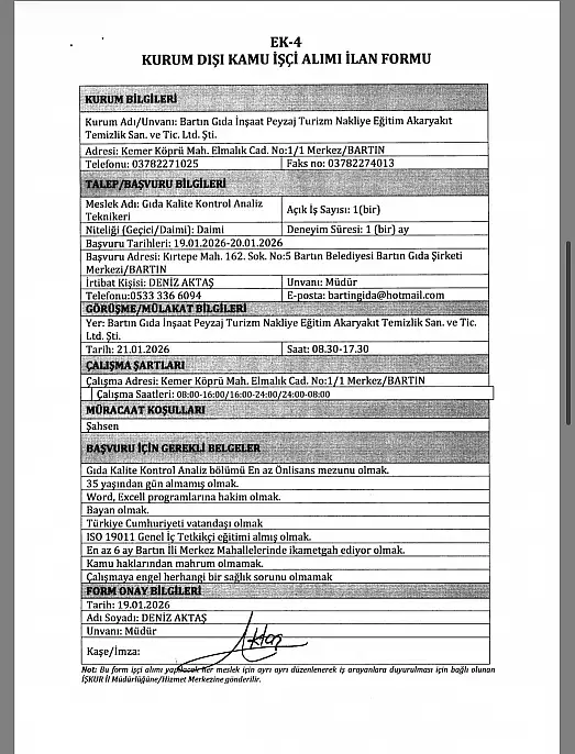 Bartın Belediyesi 17 Daimi Personel Alımı Yapacak