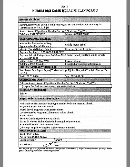 Bartın Belediyesi 17 Daimi Personel Alımı Yapacak