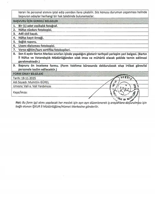 Bartın Sosyal Yardımlaşma ve Dayanışma Vakfında çalışmak üzere geçici personel alınacak.