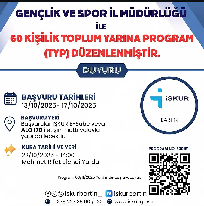 Gençlik ve Spor İl Müdürlüğüne Toplum Yararına Programı kapsamında işçi alınacak