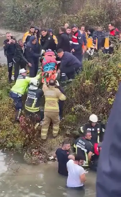 Arıt yolunda otomobil dereye uçtu:2 ölü 1 yaralı