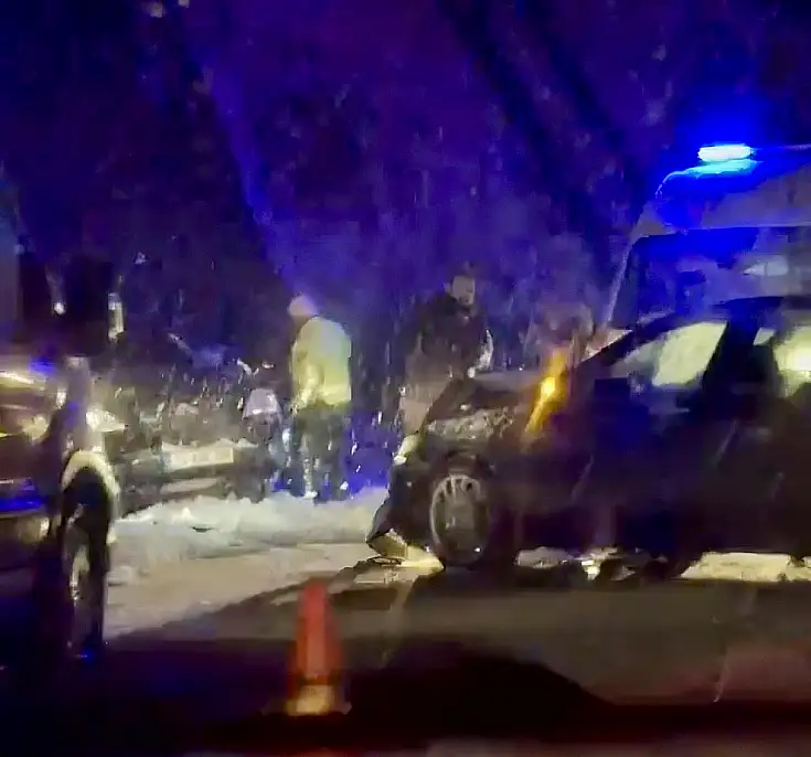 Karlı yolda kayan otomobil karşı şeritten gelen araçla çarpıştı