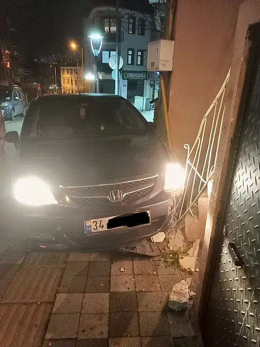 Kontrolden çıkan otomobil binanın duvarına çarptı