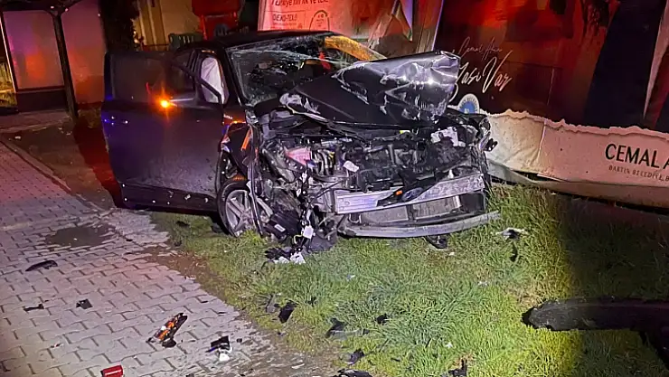 Önce direğe, sonra reklam panolarına Çarparak durabildi.