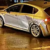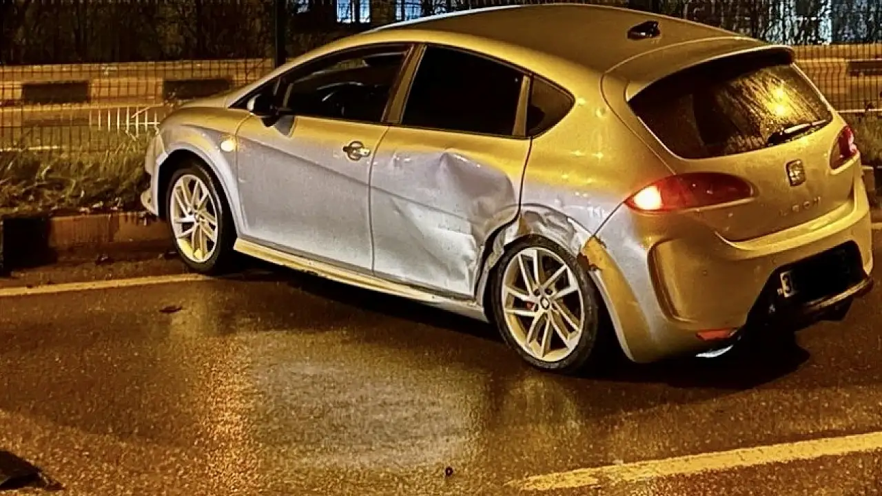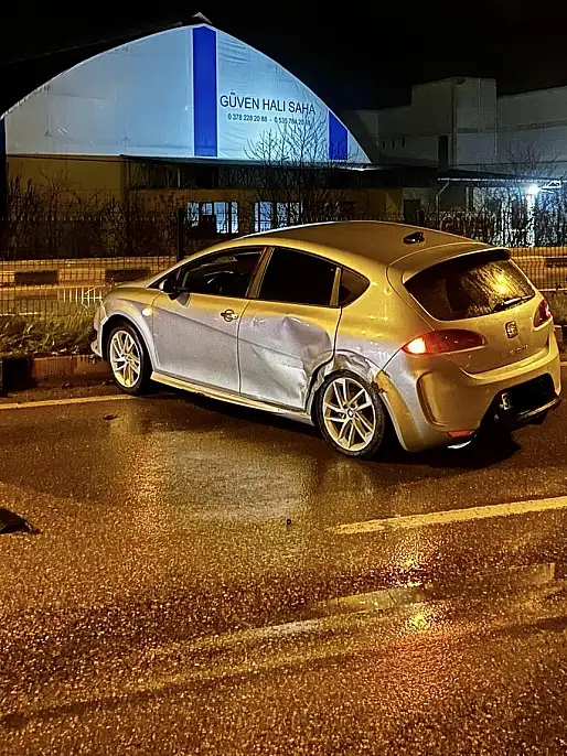 Çarpışan araçlardan biri refüje çıktı