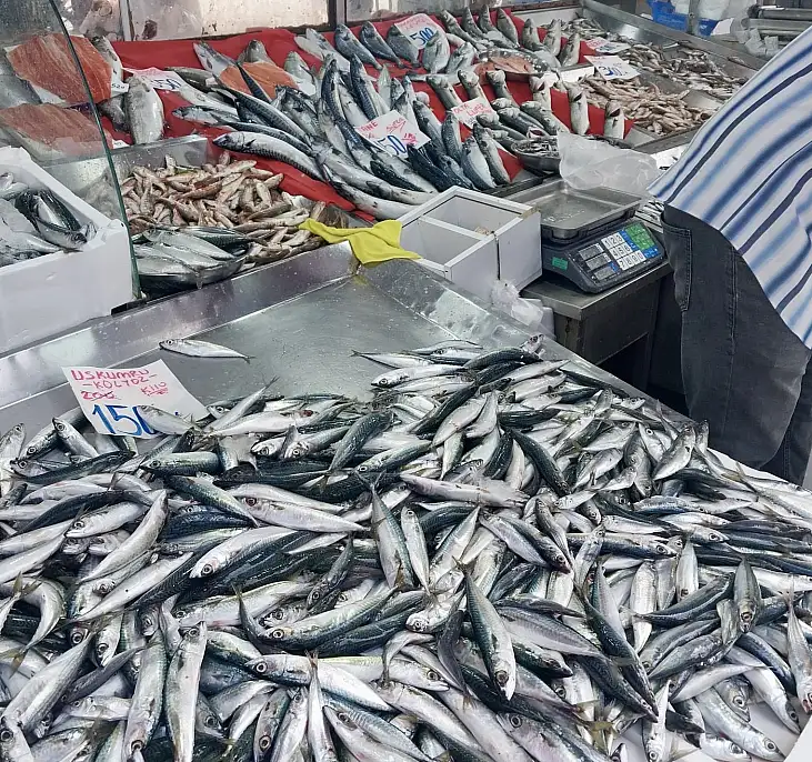 Mezgit fiyatları da büyüklüğüne göre 250-300-400 lira şeklinde olurken, istavritin bugün de görünmediği tezgâhlarda uskumrunun kolyoz hali 150 liradan satıştaydı.