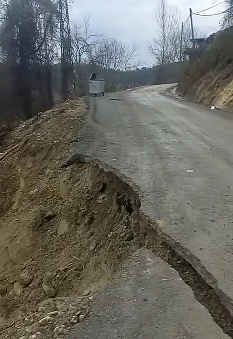 Yoğun yağışların ardından Mamak Köyü Kerpiçlik Mahallesi’nde yolda heyelan meydana geldi. Yaşanan göçük nedeniyle yolun yarısına kadar altı tamamen çöktü, asfalt zeminde ise derin yarıklar oluştu.