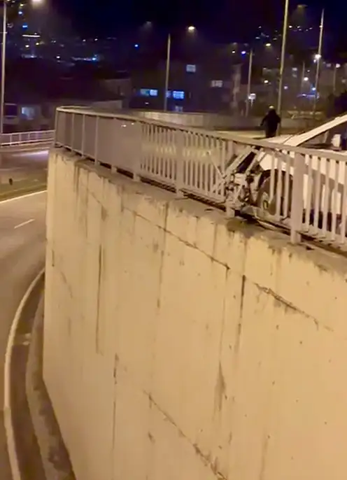 İki araç çarpıştı, korkuluklar faciayı önledi