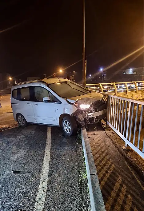 İki araç çarpıştı, korkuluklar faciayı önledi