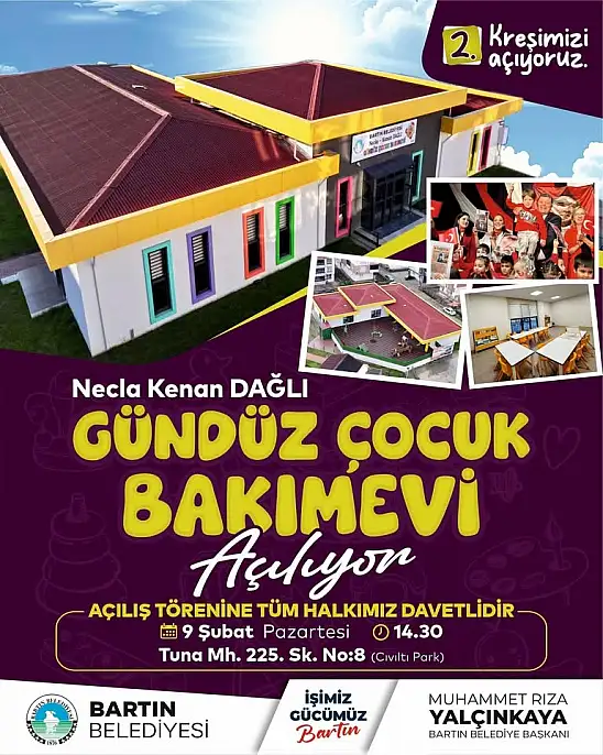 Bartın Belediye Başkanı Muhammet Rıza Yalçınkaya: “Geleceğimizin teminatı olan çocuklarımız için nitelikli, çağdaş ve gelişimlerini merkeze alan eğitim yuvaları oluşturmaya devam ediyoruz. Ailelerimizin yükünü hafifleten, çocuklarımızın güvenle ve mutlulukla büyüyeceği bu değerli eseri kentimize kazandırmanın gururunu yaşıyoruz. Açılış törenimize tüm halkımız davetlidir” ifadesini kullandı.