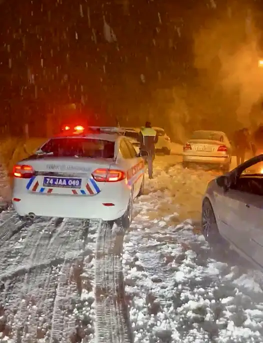 Bartın’da etkili olan kar yağışıyla birlikte vatandaşlar bazı bölgelerde çay, kahve ve küçük kamp ateşleri yakarak kış manzarasının tadını çıkarırken, akşam saatlerinde Bartın–Amasra yolu Ahatlar Köyü mevkiinde tepki çeken bir olay yaşandı.