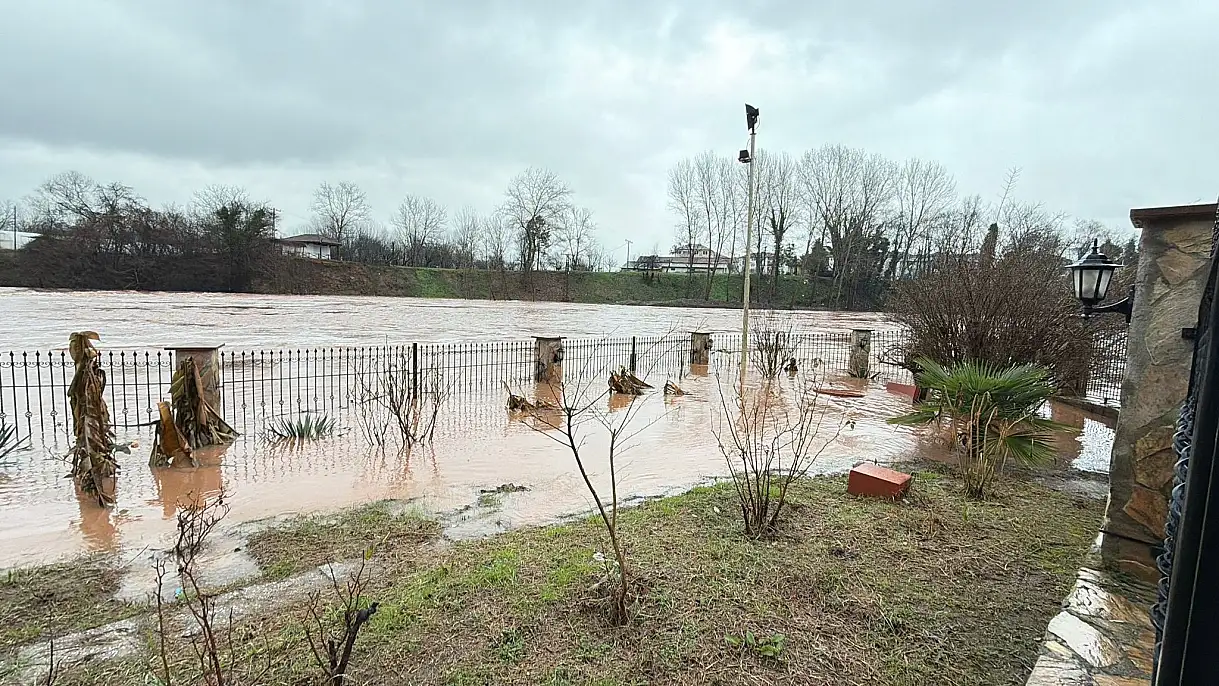 Orduyeri Mahallesi'nde gezi teknelerinin bağlandığı iskele su altında kaldı. Bölge, araç ve yaya trafiğine kapatılırken, İl Afet ve Acil Durum Müdürlüğü, polis ve belediye ekipleri de taşkın riskine karşı ırmak boyunca kontrollerini sürdürüyor. (DHA)