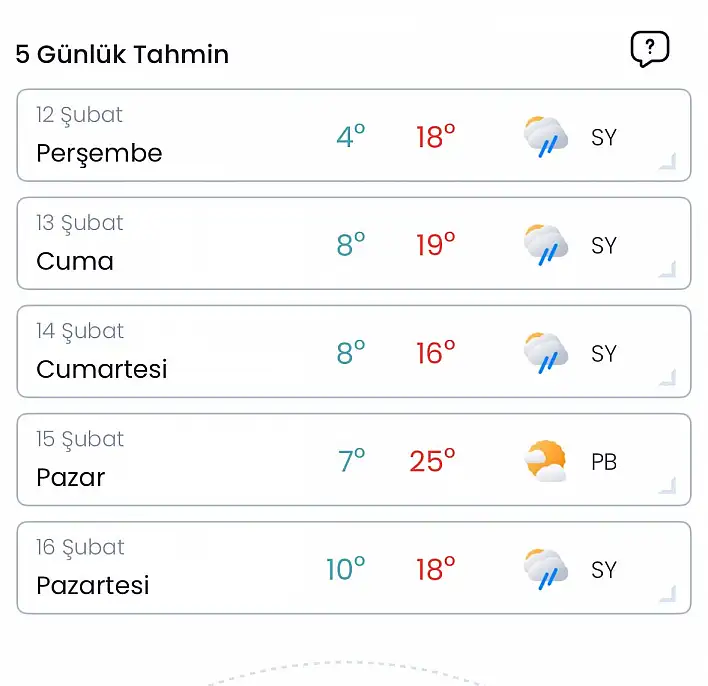 Beş günlük tahmine göre perşembe, cuma ve cumartesi günleri yağışlı bir hava beklenirken, sıcaklıklar 16–19 derece bandında seyredecek. Pazar günü ise Bartın’da termometrelerin 25 dereceye kadar çıkması öngörülüyor. Pazartesi günü yeniden sağanak yağışla birlikte sıcaklıkların 18 derece seviyelerine gerilemesi bekleniyor.