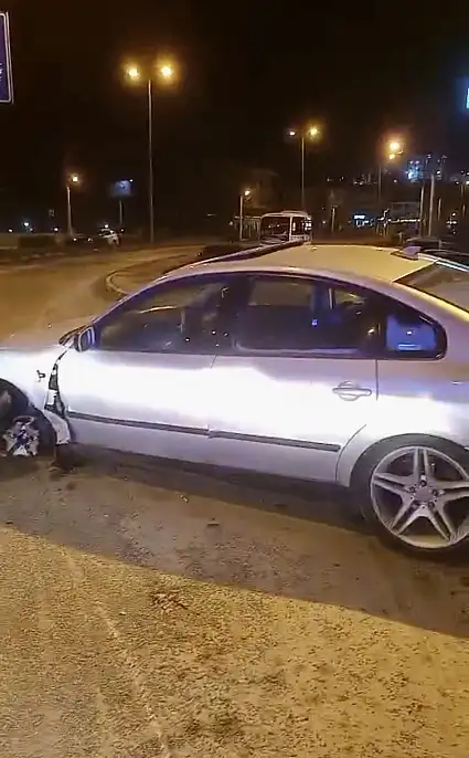 Kaçan araç, Vural Ak Kavşağı’na geldiği sırada bankete çarptı. Çarpmanın etkisiyle kavşakta bulunan orta refüjü aşan otomobil, karşı kaldırıma çarparak durabildi. Kazada aracın ön lastiği yerinden koptu.