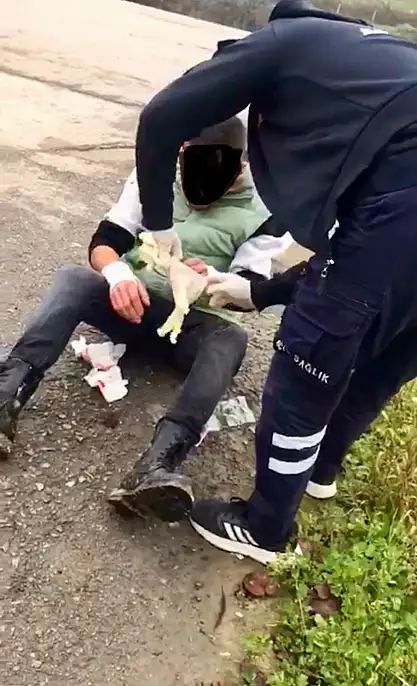 Yerde yatan şahsın elleri cebinden çıkarıldığında, bileklerinde kesi izleri olduğu tespit edildi. Yaralıya olay yerinde yapılan ilk müdahalenin ardından tedavi amacıyla Devlet Hastanesi’ne kaldırıldı.