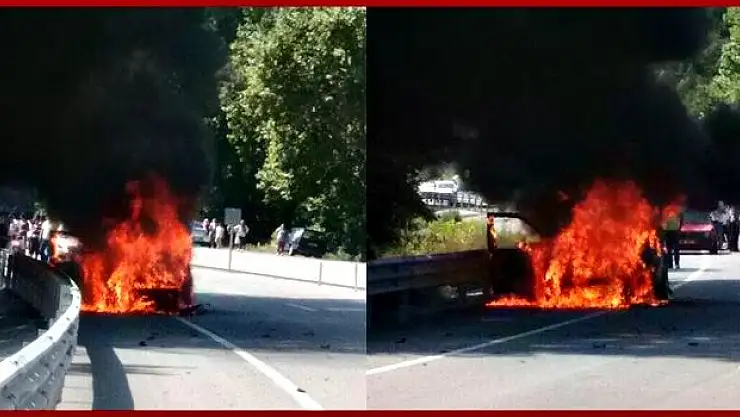 Edinilen bilgiye göre olay Devrek ile Dorukhan tüneli arasında meydana geldi. Alev topuna dönen otomobil cayır cayır yanarken o anlar yoldan geçen sürücüler tarafından görüntülendi.