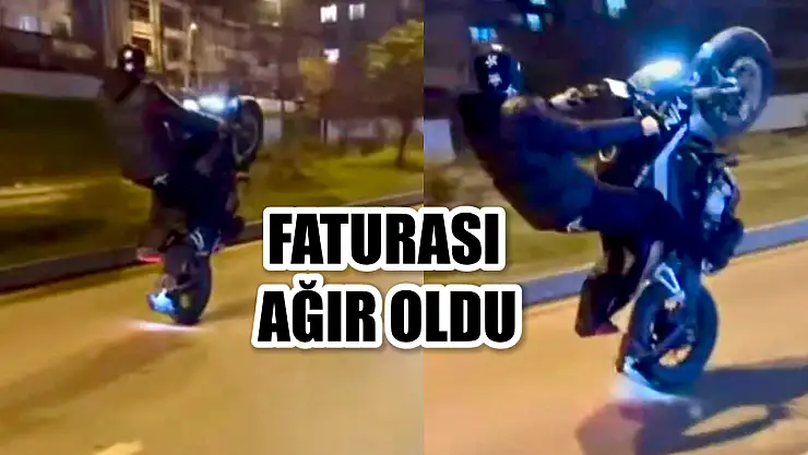 Bartın'da trafikte motosikletin ön tekerleğini kaldırarak tehlikeli bir şekilde ilerleyen sürücüye Ceza!