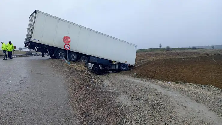 Karabük’ün Eskipazar ilçesinde kar yağışı nedeniyle kayganlaşan yolda Gürcistan plakalı bir tır, kontrolden çıkarak şarampole uçtu. Kaza anı güvenlik kameralarına yansıdı. Neyse ki sürücü kazayı yara almadan atlattı.