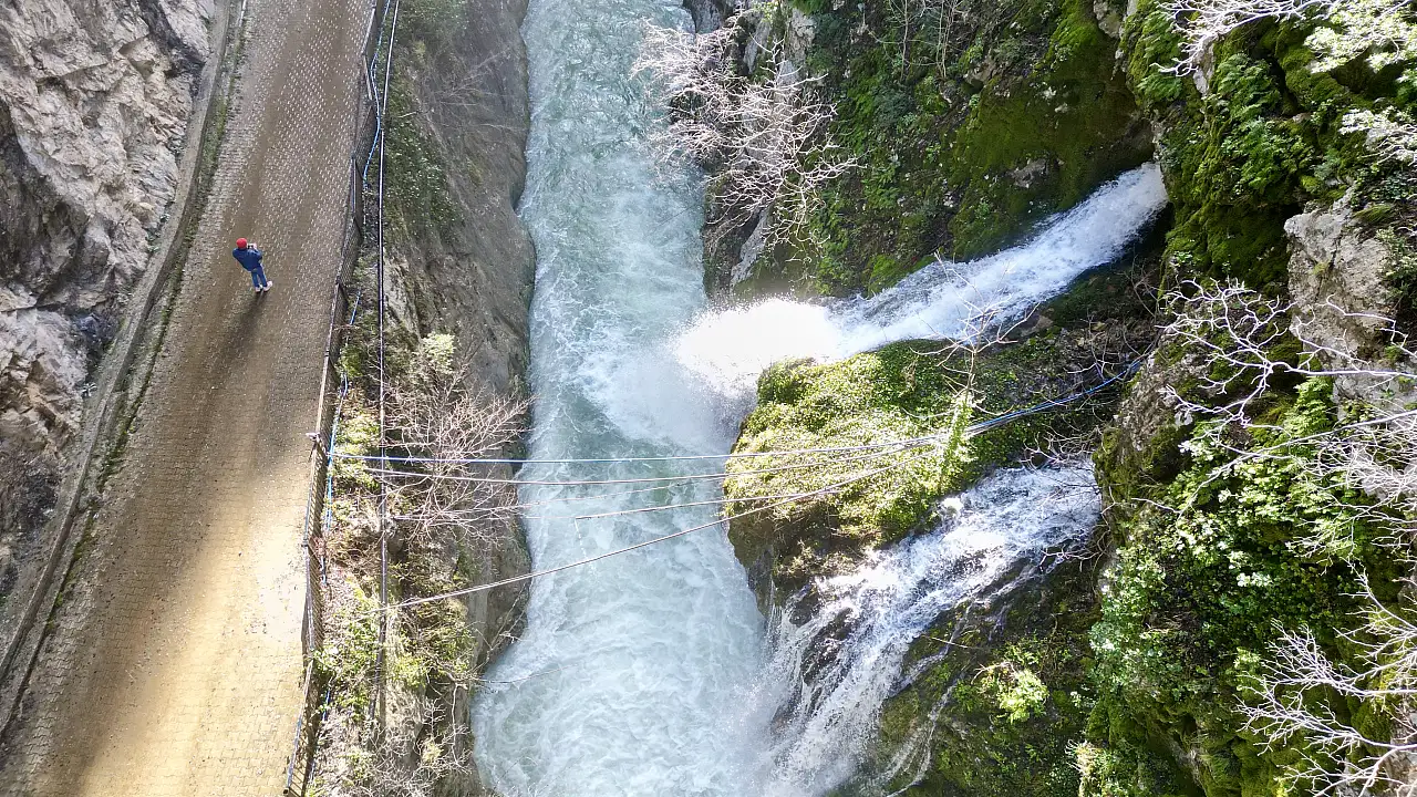 Bartın’ın Ulus ilçesinde “Aşk acısını dindiren şelale” olarak ünlenen Ulukaya Kanyonu ve Şelalesi’nde, yoğun kar yağışlarının ardından kaya oyuğunda ikinci bir şelale oluştu.