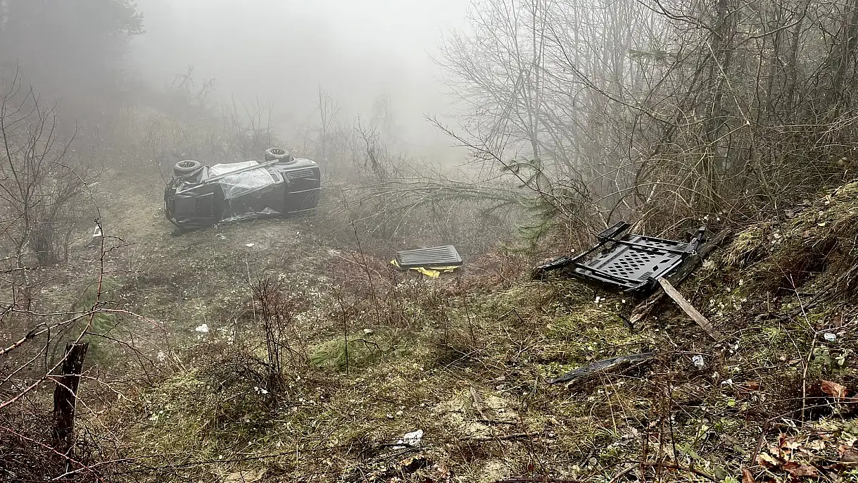 Yoğun sis kazaya neden oldu, şarampole yuvarlanan pikap hurdaya döndü