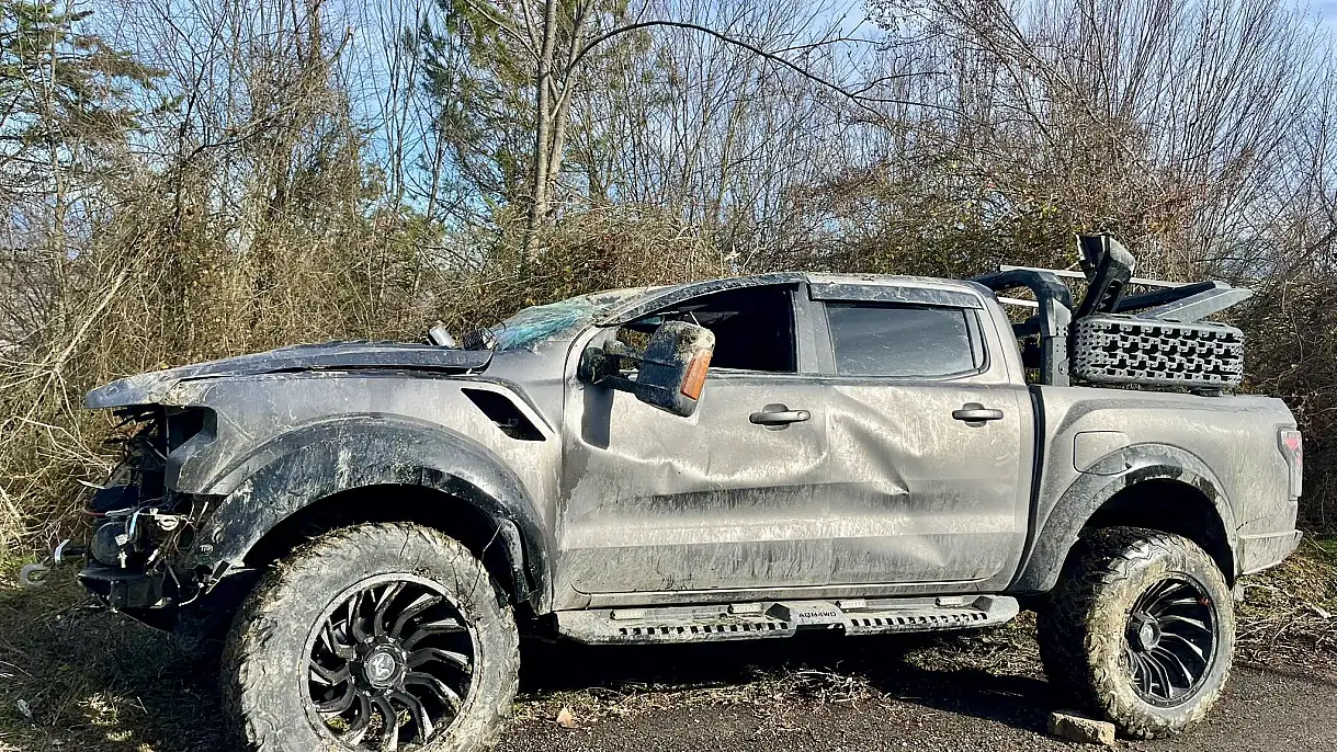 Yoğun sis kazaya neden oldu, şarampole yuvarlanan pikap hurdaya döndü