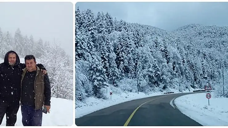 Kar yağışını etkisini sürdürürken vatandaşlar da araçlarıyla Ahmetusta Geçidi'ne gelerek fotoğraf çekterek karın tadını çıkardı.
