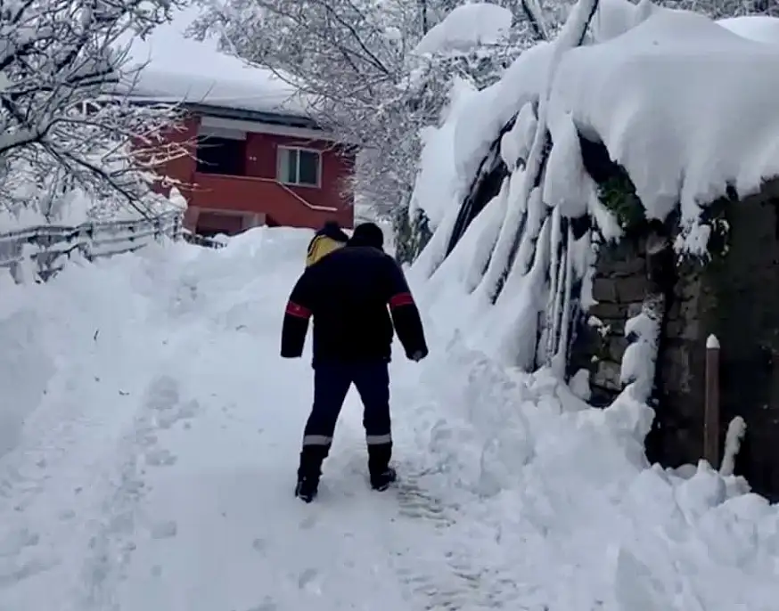 Nefes darlığı ve kronik akciğer hastalığı bulunan hasta için yapılan ihbar üzerine harekete geçen 112 Acil Sağlık ekipleri, kapanan yollar, devrilen ağaçlar ve ağır kış şartlarına rağmen bölgeye ulaşmayı başardı.